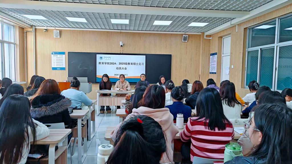 根据人才培养方案实践教学要求,为强化研究生专业认知、明确见习方向与目标,规范研究生见习工作,教育学院于10月17日在艺术楼503教室召开2024级、2025级教育硕士见习动员大会。学院领导、相关负责教师及全体见习生参会。